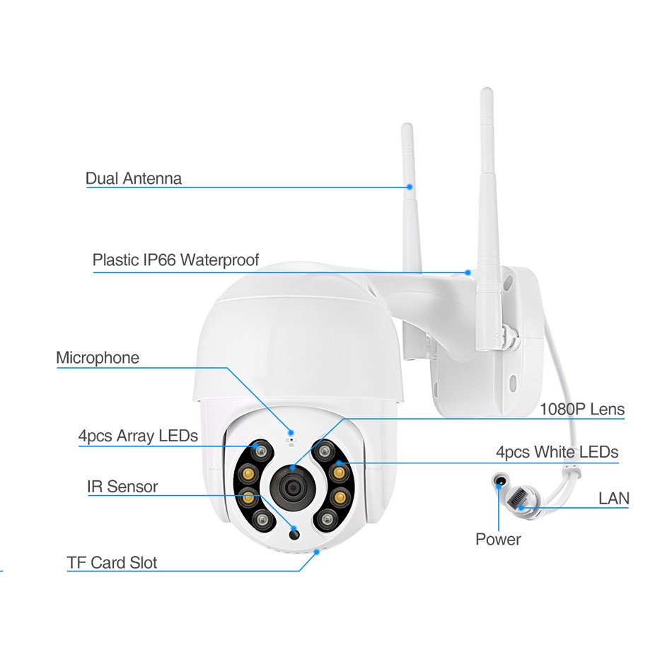 - Với góc quay ngang 355°, dọc 90° camera xoay 360 cho cái nhìn toàn cảnh tại vị trí lắp đặt camera wifi ngoài trời.
