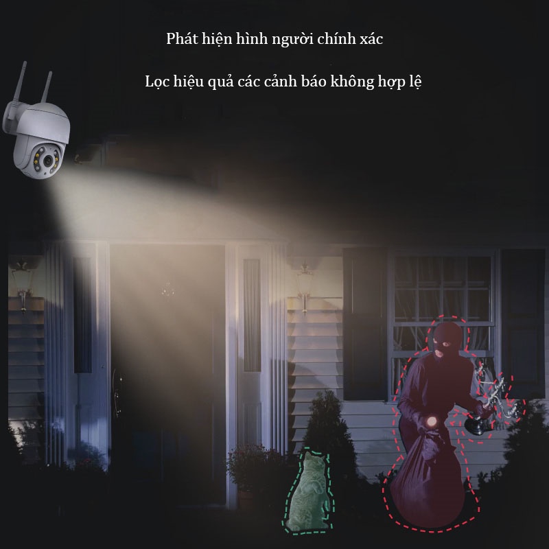 - Được trang bị tính năng phát hiện và theo dõi chuyển động thông minh, người dùng sẽ nhận được thông báo về điện thoại khi camera hìn