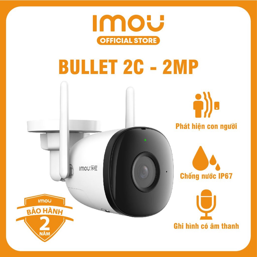 Camera Wifi Imou Bullet 2C (2MP) I Chống nước IP67 | Phát hiện con người I Ghi hình có âm thanh I Bảo hành 2 năm