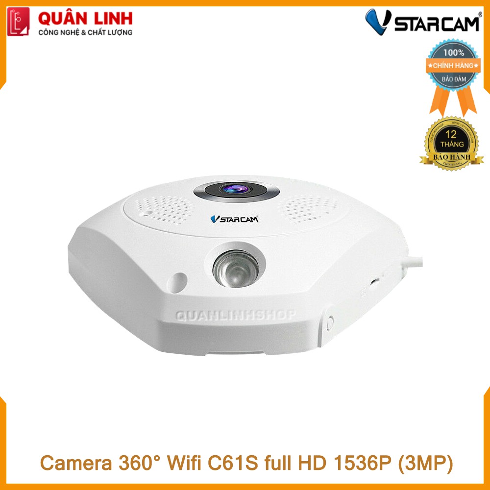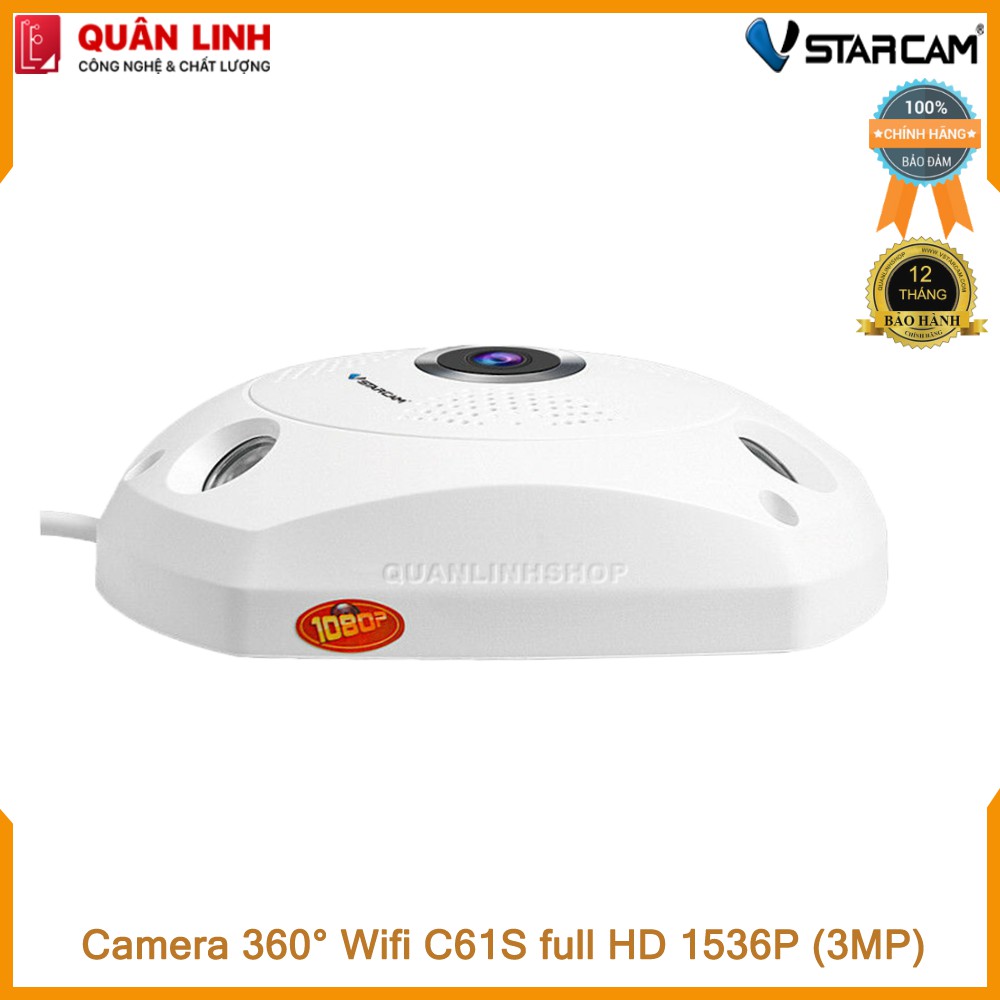 Camera Wifi IP Vstarcam C61s Full HD 1536P ốp trần, góc rộng 360 độ kèm thẻ 32GB