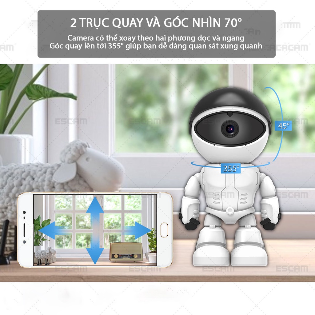 -Thiết kế hình robot giúp camera có thể đặt ở nhiều vị trí cần quan sát mà không gây sự chú ý.