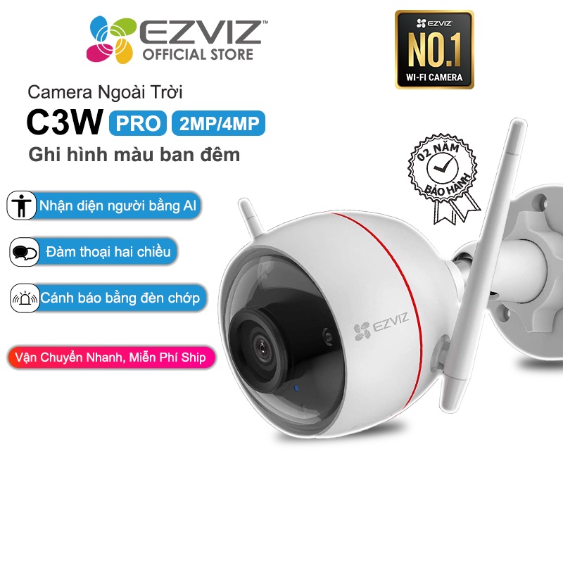 Giới thiệu Camera WIFI Ngoài trời EZVIZ C3W-PRO 4MP,IP67 chống bụi nước, Màu Ban Đêm, Âm Thanh 2 Chiều, Đèn và Còi Báo Động, AI