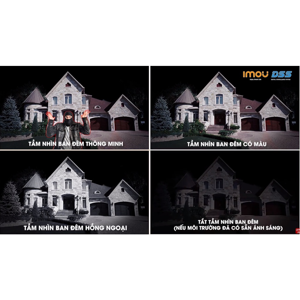 - Cảnh cáo chủ động với tích hợp còi 110dB và đèn trợ sáng, xua đuổi những kẻ lạ mặt khỏi khu vực an ninh mà gia chủ không cần phải xuất hiện.