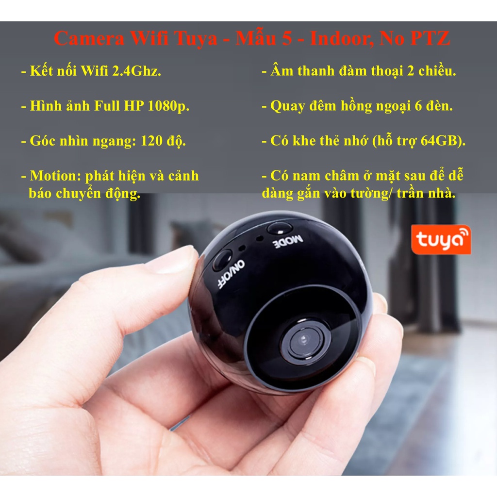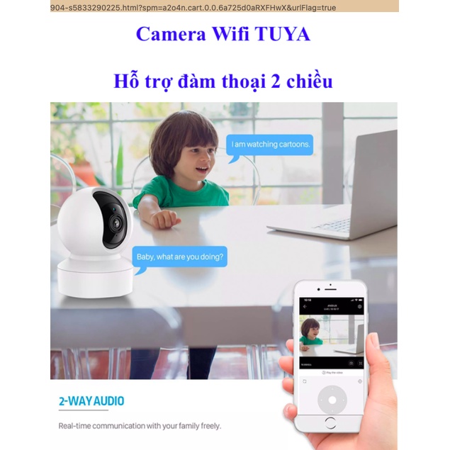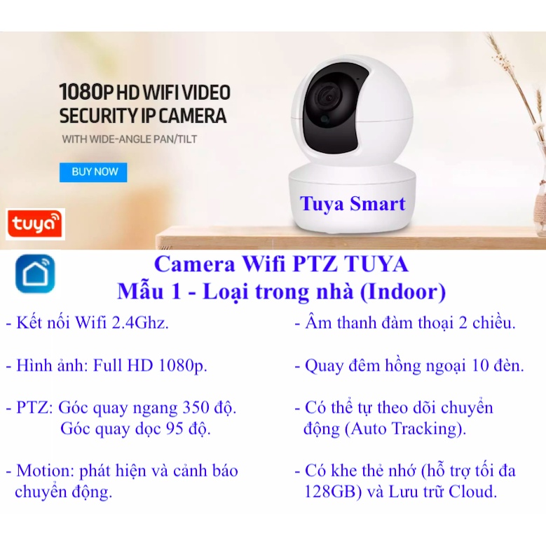 Camera thông minh kết nối Wifi thuộc hệ sinh thái Tuya.Hình ảnh FullHD 1080p, H264, hồng ngoại, đàm thoại hai chiều, cảnh báo chuyển động.