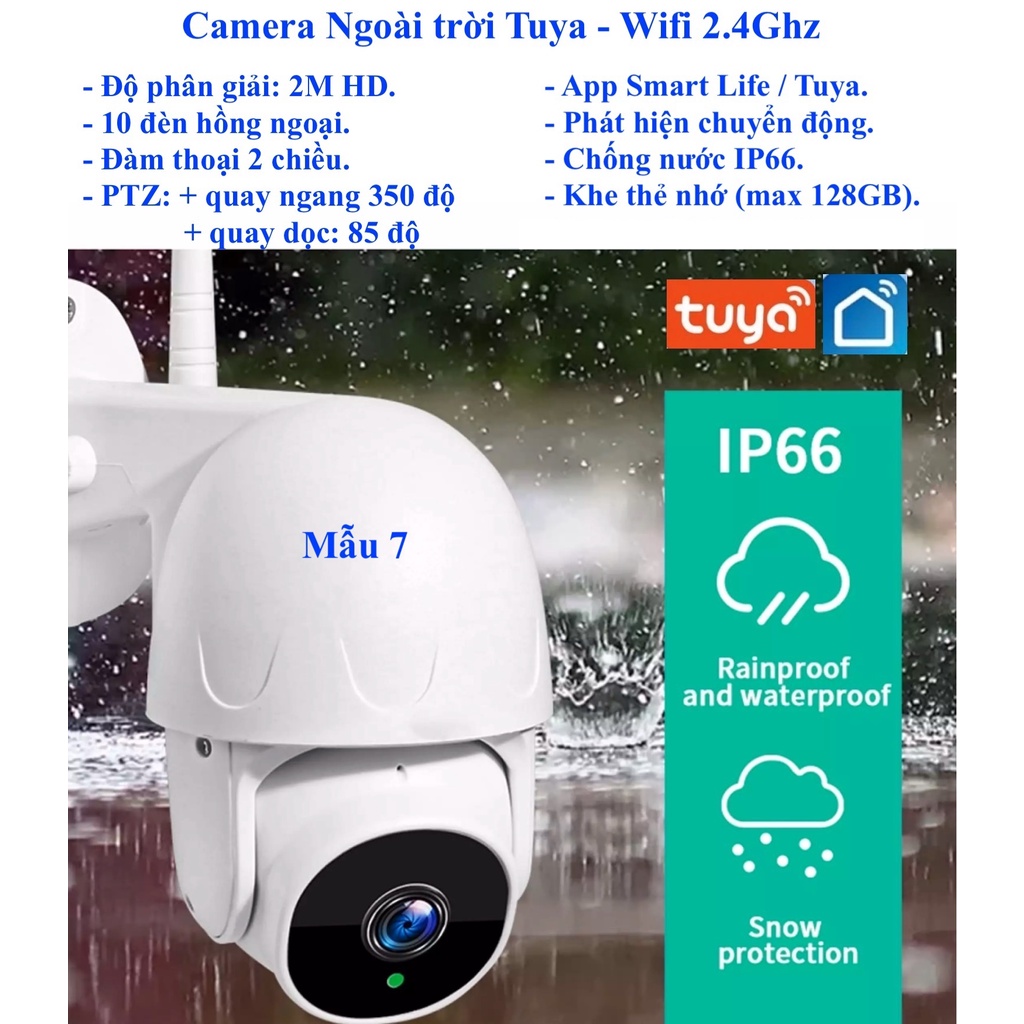 Camera Wifi Tuya FullHD 2MP/3MP/1080p, loại ngoài trời (Outdoor) hoặc trong nhà (Indoor), App Smart Life/Tuya.
