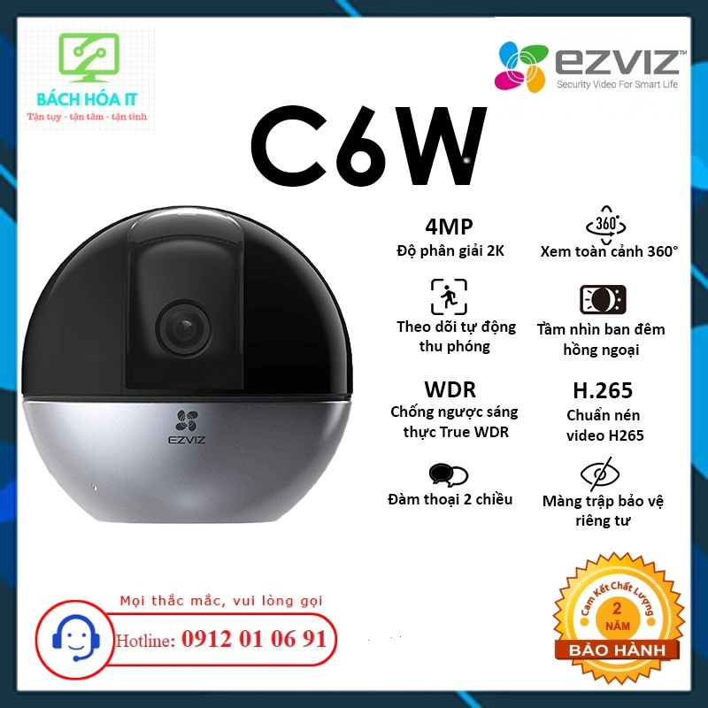 Camera Xoay IP WIFI 4M 2K EZVIZ C6W quay quét 360 độ Chính Hãng, bảo hành 24 tháng