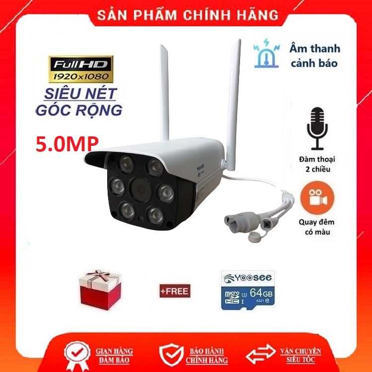 Tên sản phẩm: Camera Yoosee 2 râu 5.0MP Full HD ngoài trời góc rộng, siêu nét, đàm thoại 2 chiều, ban đêm có màu