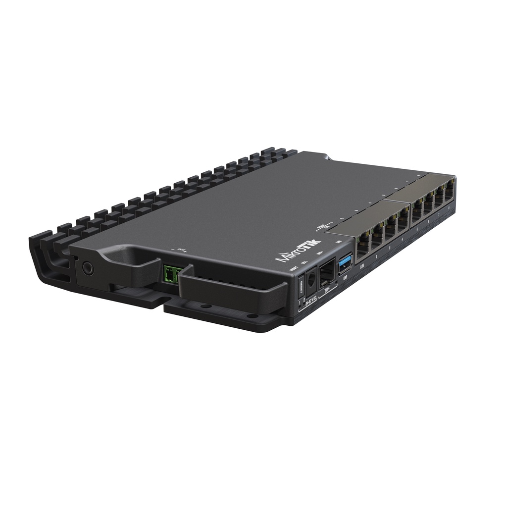 Double the usual performance: we took your feedback from the MikroTik User Meetings to create the perfect home lab router: compact, powerful, with multiple powering options and efficient cooling.RB5009 has it all, and even more! The board features 9 wired ports and a full-sized USB 3.0. Seven of the ports are Gigabit Ethernet, another one is 2.5 Gigabit Ethernet, and the last one is a 10G SFP+ cage. All the ports are connected to a powerful Marvell Amethyst family switch-chip with a 10 Gbps full-duplex line leading to the Marvell Armada Quad-core ARMv8 1.4 GHz CPU.Both CPU and the switch-chip are located on the bottom of the board – so the case acts as a massive heat-sink! RB5009UG+S+IN can be powered in 3 different ways: a) PoE-in from Ethernet port #1 b) DC Jack c) 2-pin terminal on the side Boards come with 1GB of DDR4 RAM and 1GB NAND storage. This combination of ports and components, compared to our other products in a similar form factor, provides almost double the performance in configurations with heavy CPU loads. With a simple set of mounting accessories, you can mount FOUR of these routers in a single 1U rackmount space! No more server-room-Tetris, just pure productivity.-------------------------------------------------------------