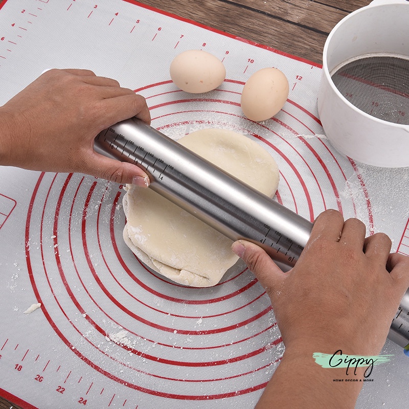 Cây cán bột/cây lăn bột inox có thể điều chỉnh theo độ dày của bột - Dụng cụ cắt bột - dụng cụ nhà bếp - Gippy Decor