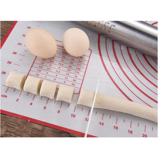 Cây cán bột inox + thảm silicon- Gồm 1 cây cán bột + 1 thảm silicon