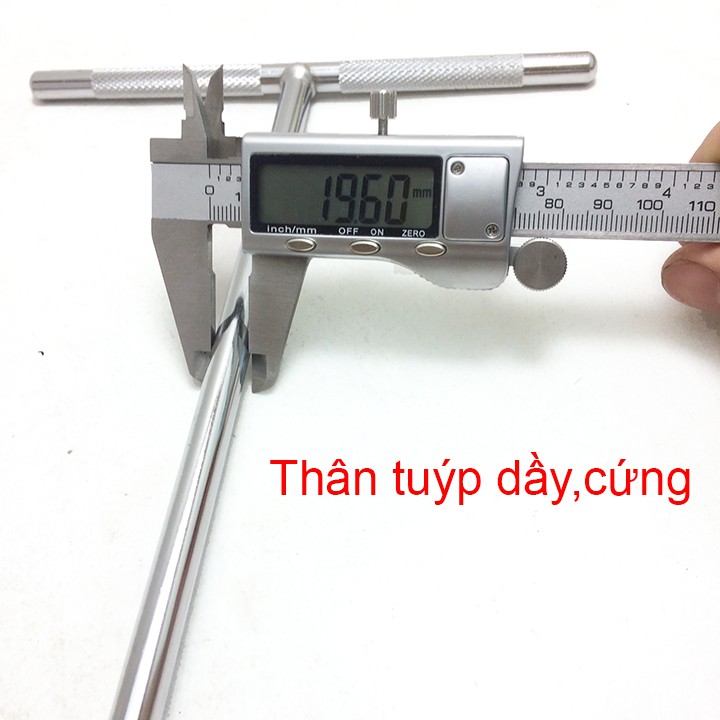 Cùng với tay cầm bằng thép nguyên khối được tạo các vân chống trơn trượt khi siết ốc sản phẩm hoàn toàn phù hợp cho các ửa hàng sửa chữa xe máy và anh em top thợ.