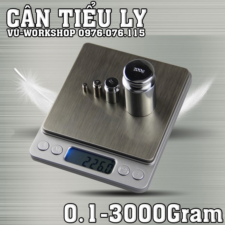 Cân Điện Tử Mini - Cân Tiểu Ly Đong RESIN, SILICONE. Thực Phẩm I2000 0.1g-3000gCân điện tử mini là công cụ không thể thiếu cho các anh em chơi RESIN, làm khuôn. Giúp các anh em cân đong chính xác tỷ lệ RESIN và xúc tác đông cứng. Đặc biệt có chức năng trừ bì, đèn led sáng giúp các anh em dễ dàng thao tác.