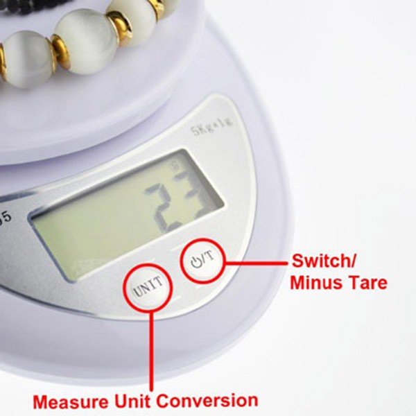 – Khả năng cân từ đơn vị 1g. Cân tối đa: 5kg.