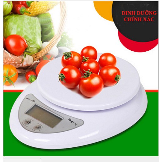 Trọng lượng cân tối đa 5kg, sai số 1g.