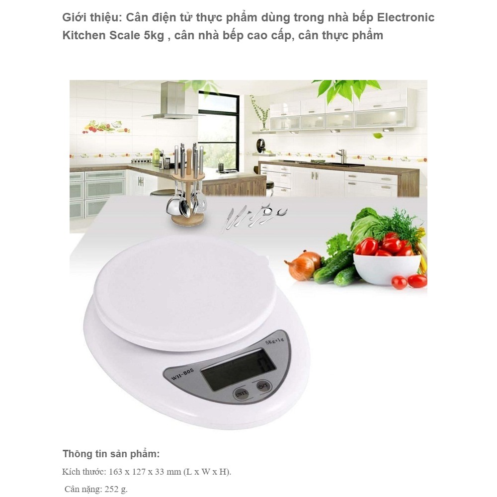 Giới thiệu Cân điện tử thực phẩm dùng trong nhà bếp Electronic Kitchen Scale 5kg - Cân tiểu ly