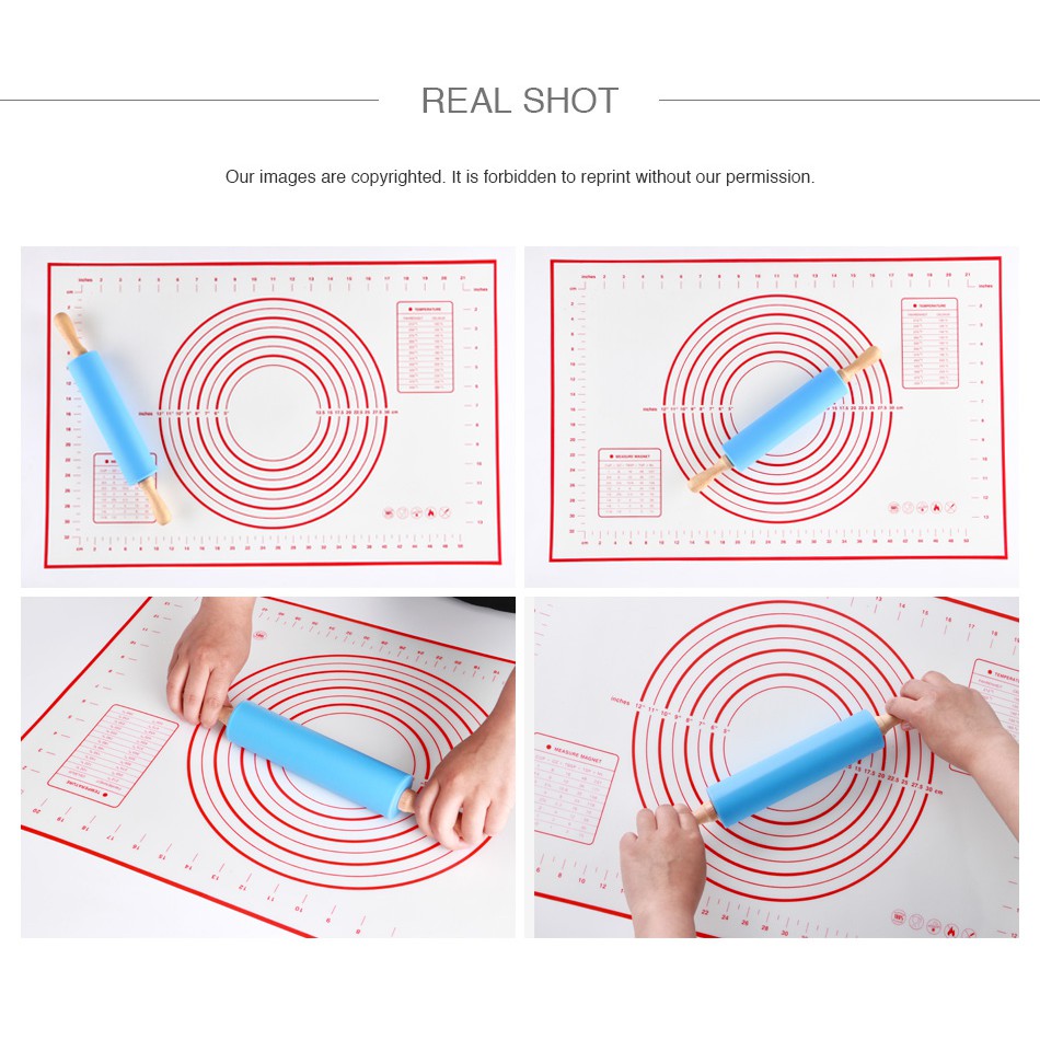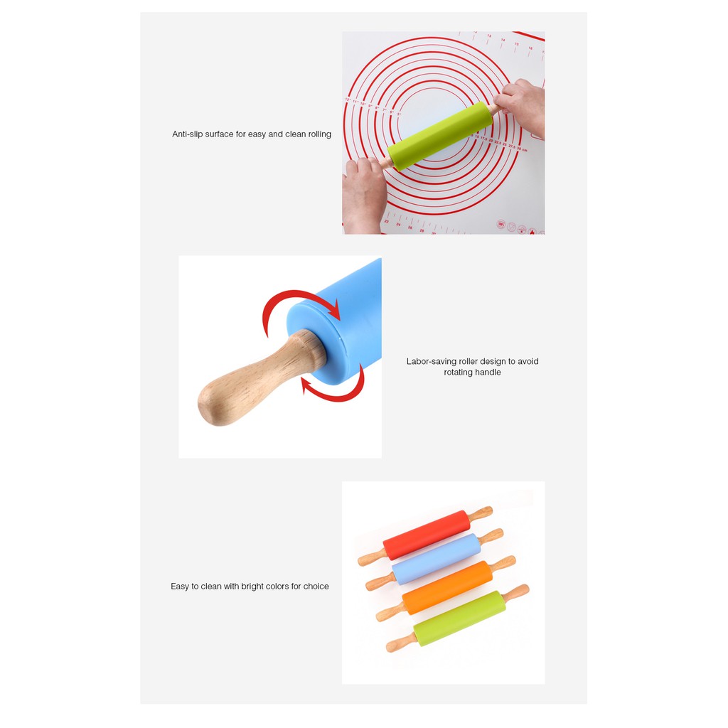 Cán lăn bột Silicon 30cmTrong làm bánh, giai đoạn lăn bột & làm nhuyễn bột rất quan trọng, khi đó ta phải sử dụng 1 dụng cụ làm bánh cơ bản đó là cán lăn bột. Ngoài lựa chọn là cán lăn bột gỗ thì 1 lựa chọn khác cho các chị em đó là cán lăn bột silicon.
