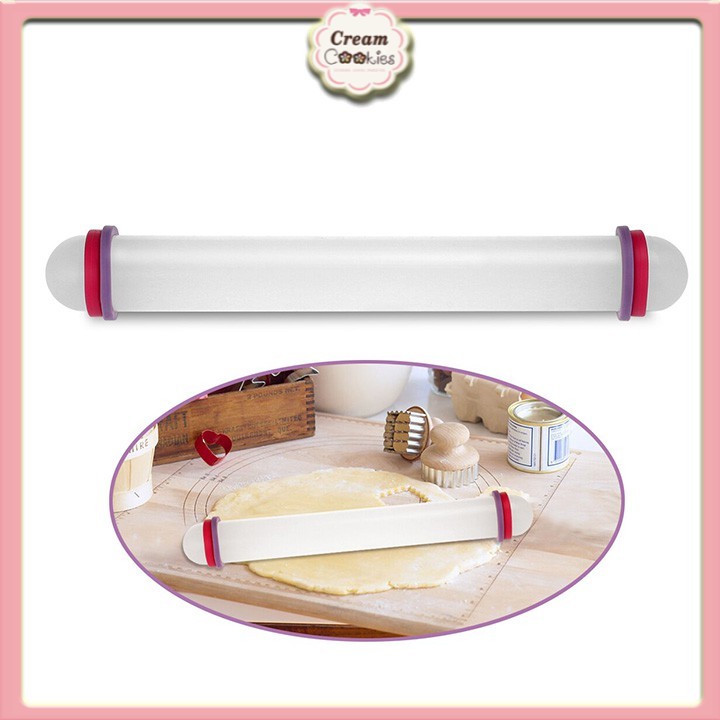 Sản phẩm có vòng đệm để điều chỉnh độ dày mỏng của bột, lăn bột dàn đều, đẹp, không bị chỗ cao chỗ thấp.