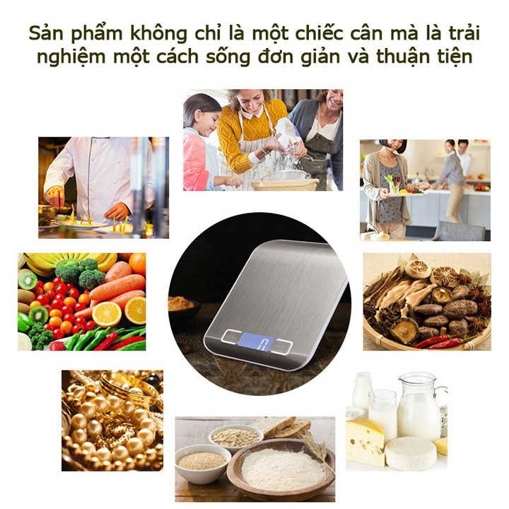 - Cân điện tử nhà bếp phù hợp cho cân thực phẩm nhà bếp và các đồ vật khối lượng nhỏ hơn 5kg độ chính xác là 1g.