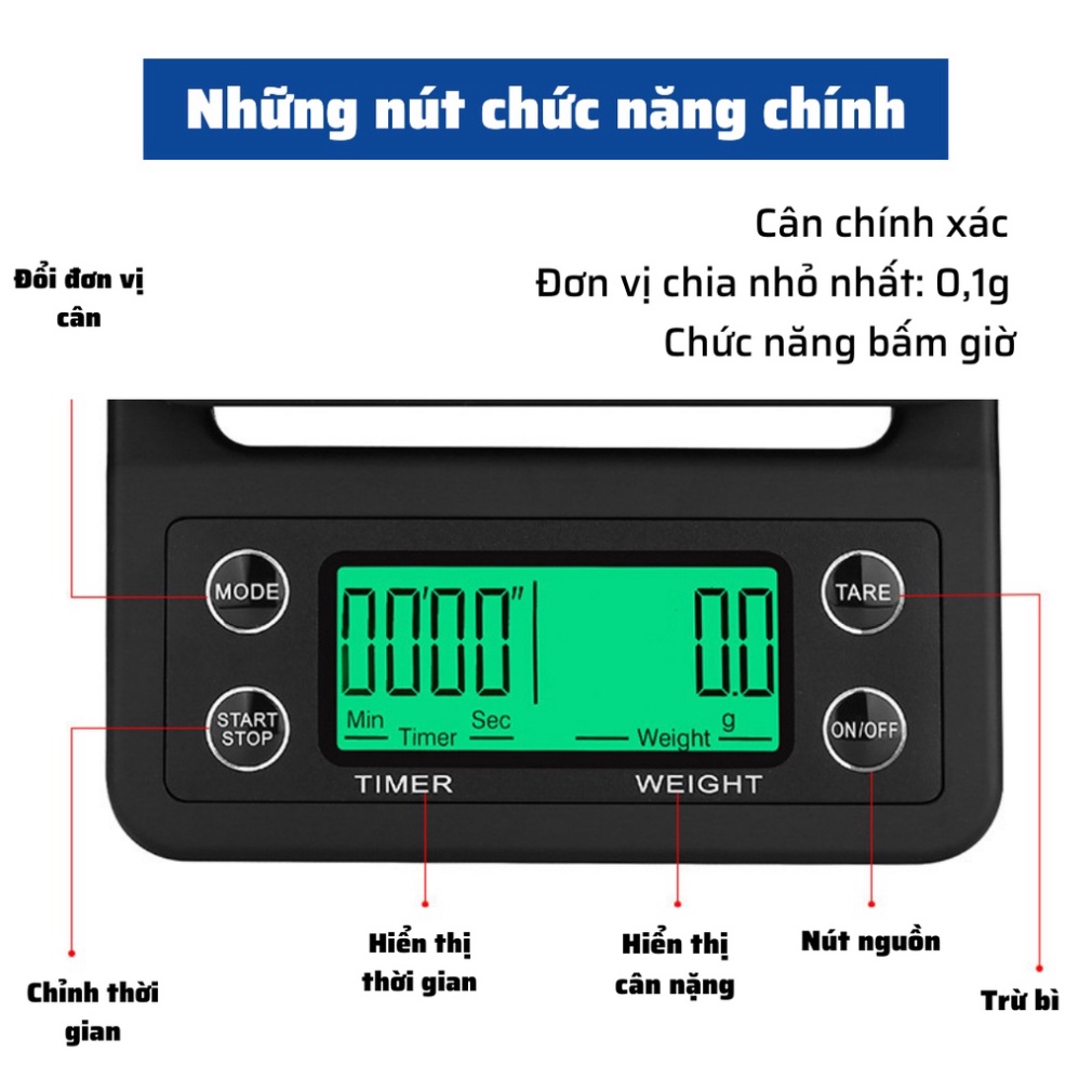 Nhà cửa & Đời sống > Dụng cụ nhà bếp > Cân nhà bếp || Cân pha cà phê tiểu ly điện tử mini cafe rang xay Espresso định lượng 0.1g - 5kg độ chính xác cao làm bánh nhà bếpCòn hàng