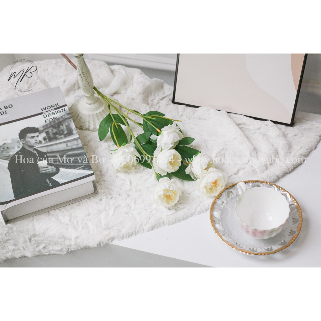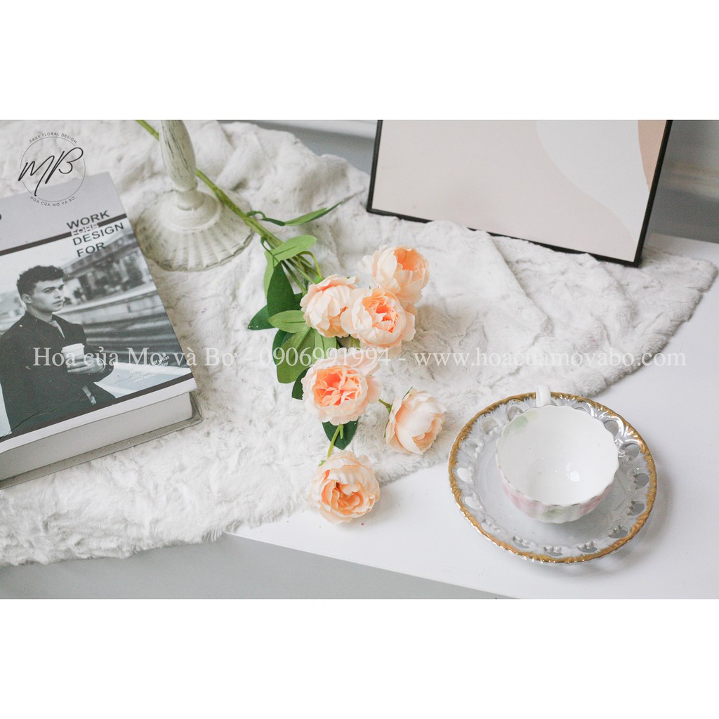 Cành Hoa hồng Trà 7 Bông Lụa Merber (Mơ & Bơ) Nhiều Màu, Búp Hoa Dài 75cm - Bông Trà Khô Hoa Giả Decor Trang Trí
