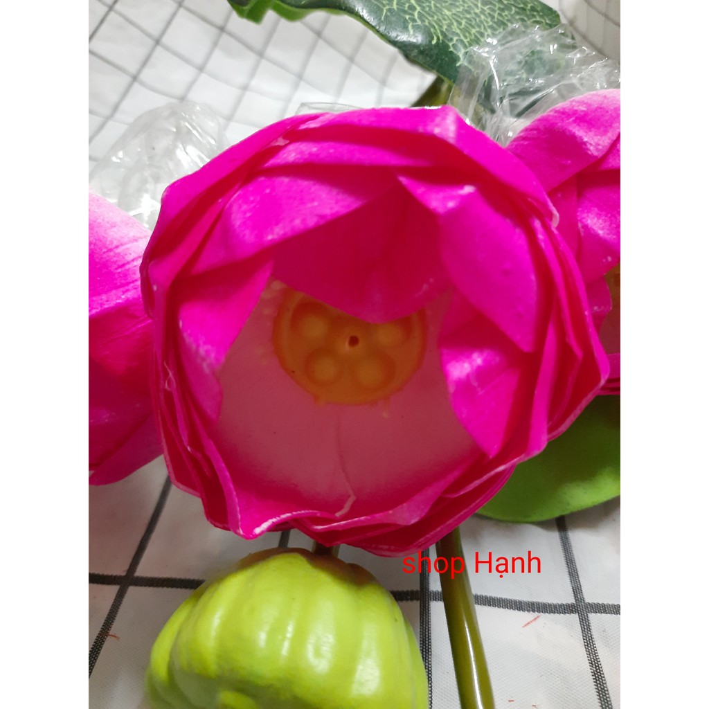Cành hoa sen cao 45 cm1 cành hoa gồm 3 bông, 1 nụ, 1 đài sen và 4 lá sen