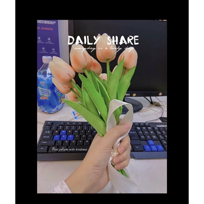 Nhà cửa & Đời sống > Trang trí nhà cửa > Hoa trang trí || Cành hoa tulip hoa lụa giả nhiều màu sắc trang trí phòng khách dễ thươngCòn hàng