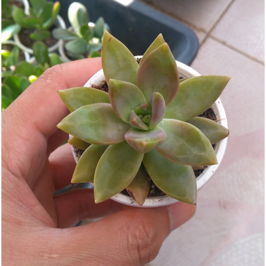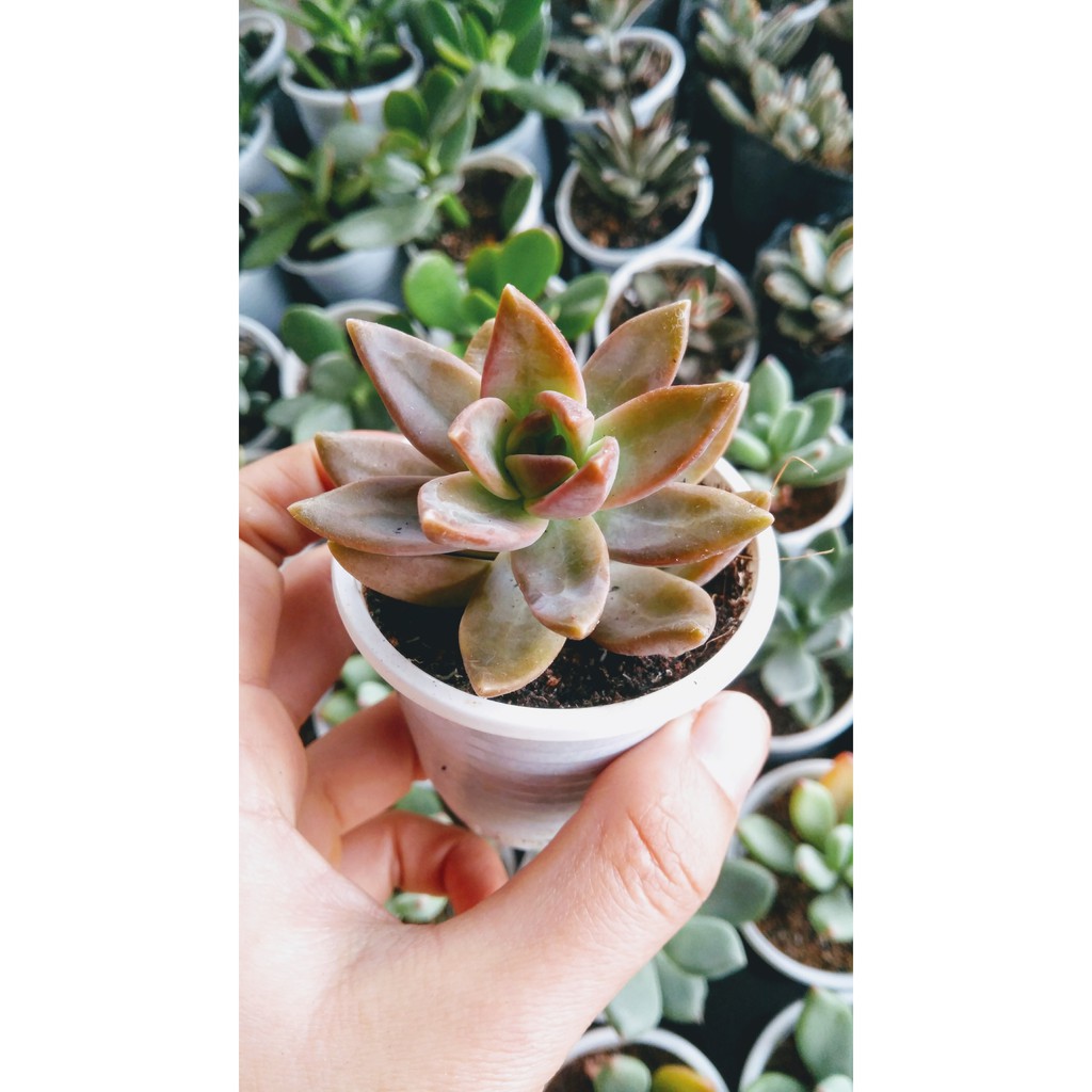 - Cây trồng 4 - 6 tháng, kích thước cây như hình. Sen đá đỏ là loại sen đá có sức sống dẻo dai, thích hợp với các bạn mới trồng cây.
