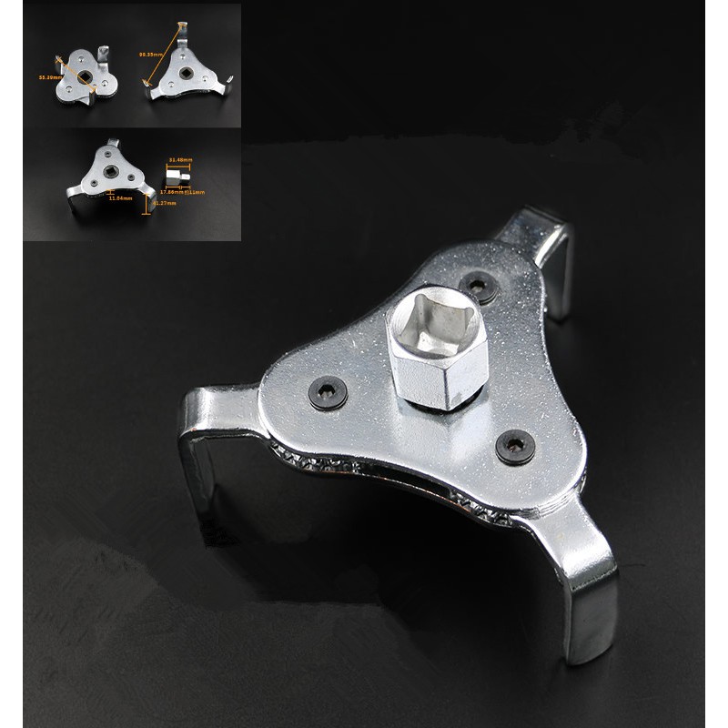 Thiết kế: 3 chân dẹp, bề mặt chân có độ cong để ôm sắt nắp lọc dầu (nhớt)