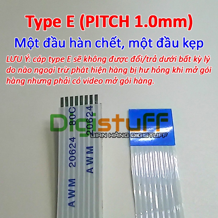 - Cáp có PITCH 1.0mm, có chiều rộng: XEM TRÊN HÌNH HƯỚNG DẪN.