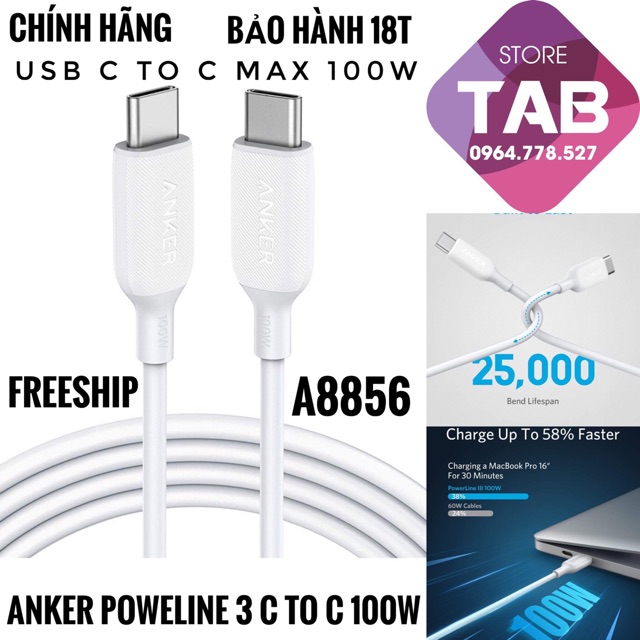 ⭐️ Cáp Anker Powerline III Usb-C to C 1.8m Max 100w Bảo Hành 18 T (A8856)✅ Model: A8856