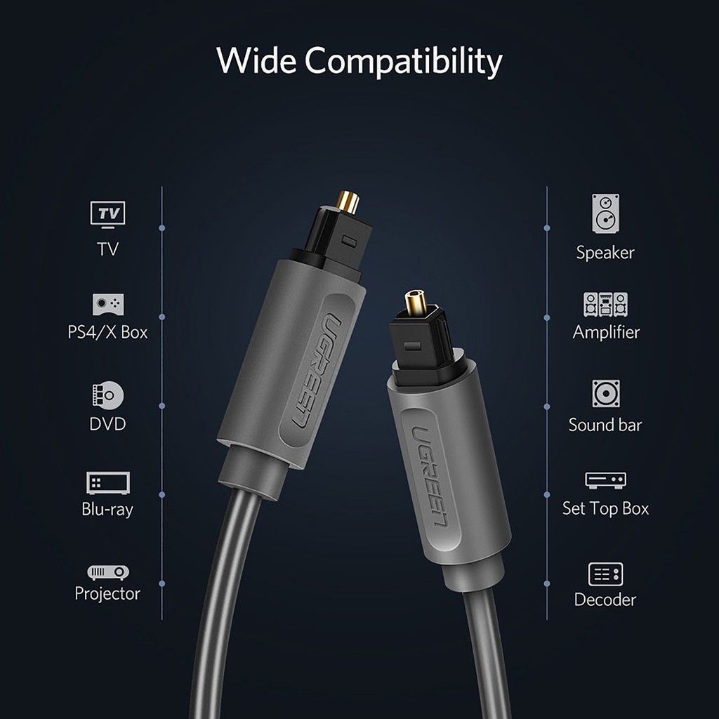 Cáp Audio Sợi Quang Optical Ugreen AV122 là dòng cáp cao cấp trên thị trường hiện nay, dùng để kết nối các thiết bị hỗ trợ đầu ra audio Optical như PC, Xbox 360, PS4, HD Media Player… đến các thiết bị khuyếch đại âm thanh như Loa, Amplifier, Sound Card… với chuẩn âm thanh 5.1/7.1 trung thực, sống động giúp người tiêu dùng trải nghiệm một cách chân thật.
