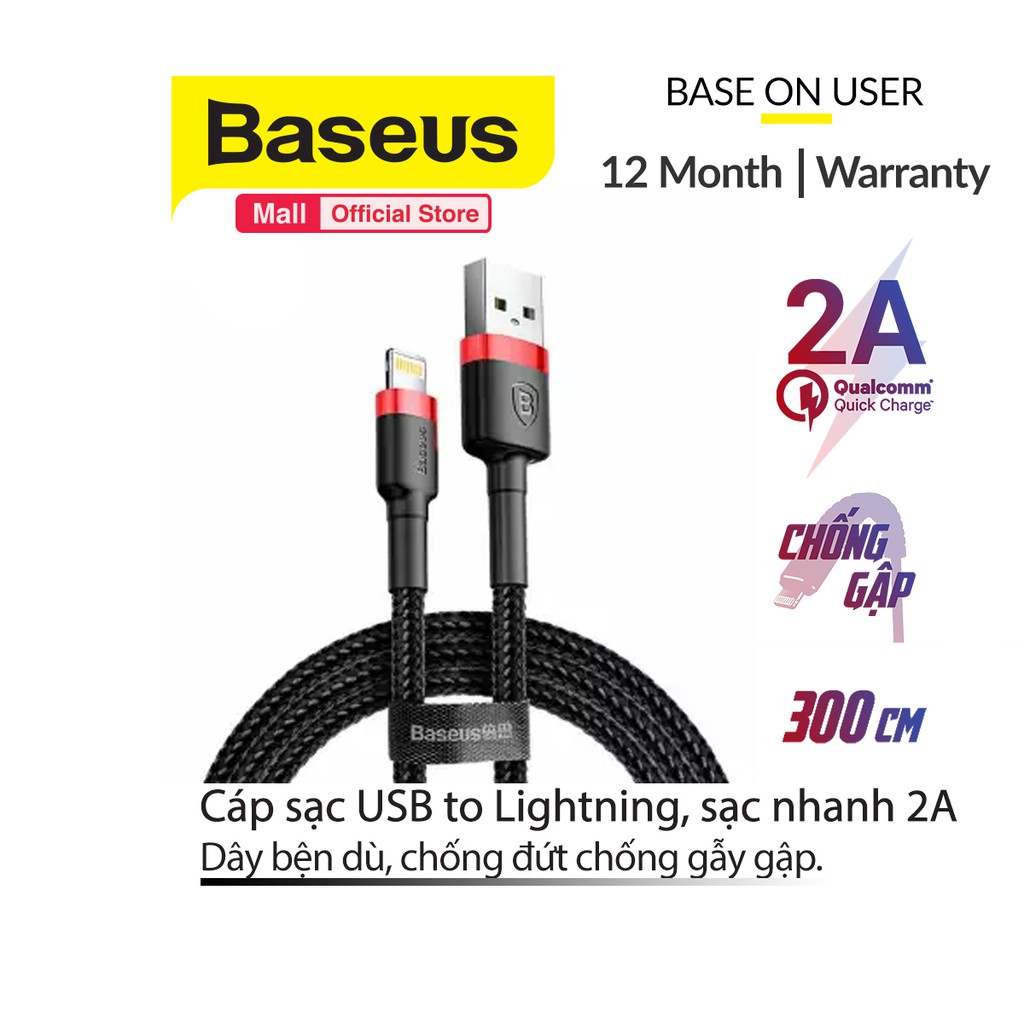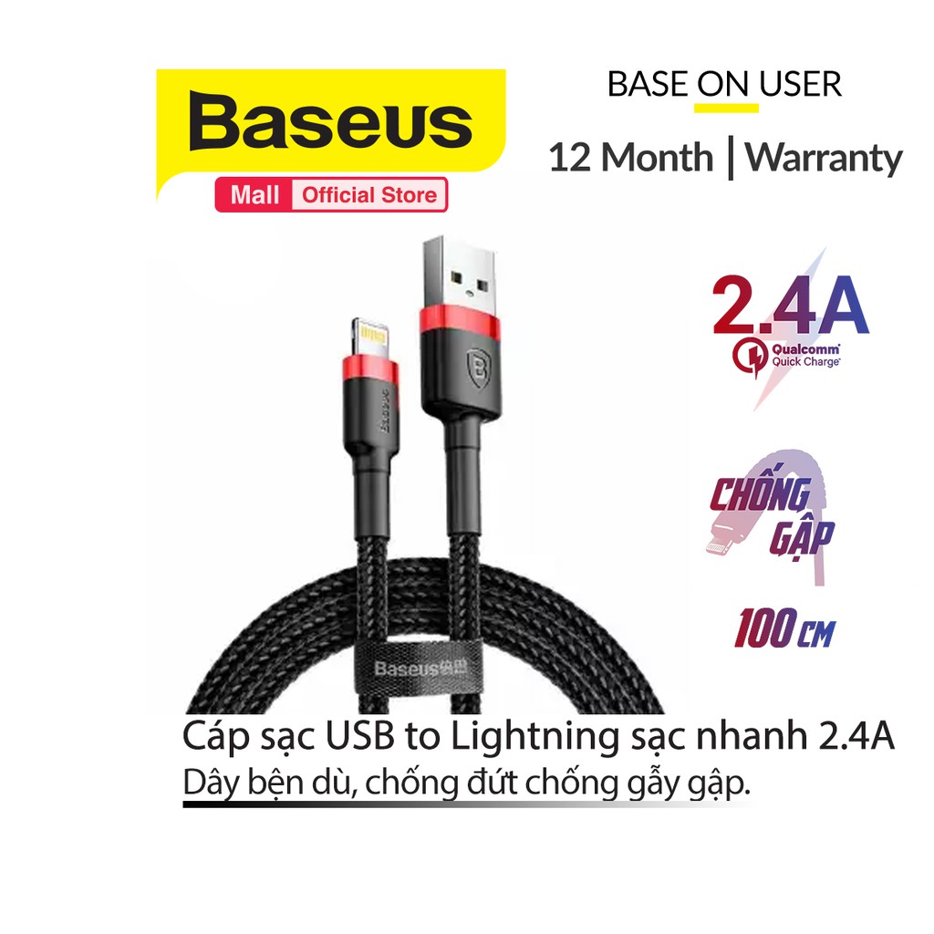 Giới thiệu Cáp Baseus Cafule Lightning dành cho iPhone/iPad sạc nhanh và truyền dữ liệu tốc độ cao 0.5m,1m/2m/3m ( 2.4A/1.5A/2A )