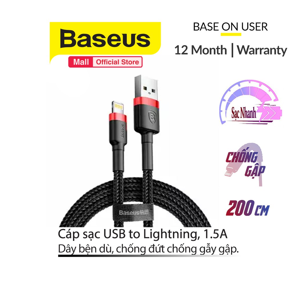 Điện Thoại & Phụ Kiện > Phụ kiện > Cáp, sạc & bộ chuyển đổi > Cáp & Bộ chuyển đổi di động || Cáp Baseus Cafule Lightning dành cho iPhone/iPad sạc nhanh và truyền dữ liệu tốc độ cao 0.5m,1m/2m/3m ( 2.4A/1.5A/2A )Còn hàng