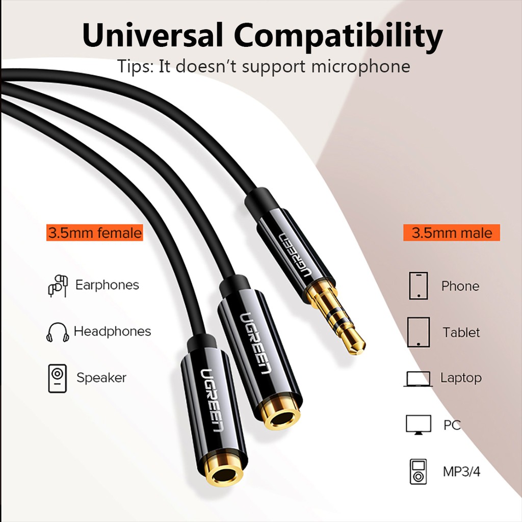Cáp Chia Audio 1 Ra 2 | UGREEN AV134, Chia 1 cổng ra 2 cổng riêng biệt nhưng chất lượng âm thanh không hề suy giảm