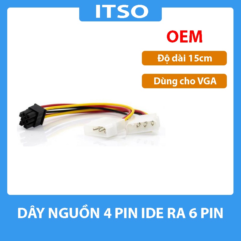 Cáp chuyển 2 nguồn 4 pin ra nguồn phụ 6 pin VGA