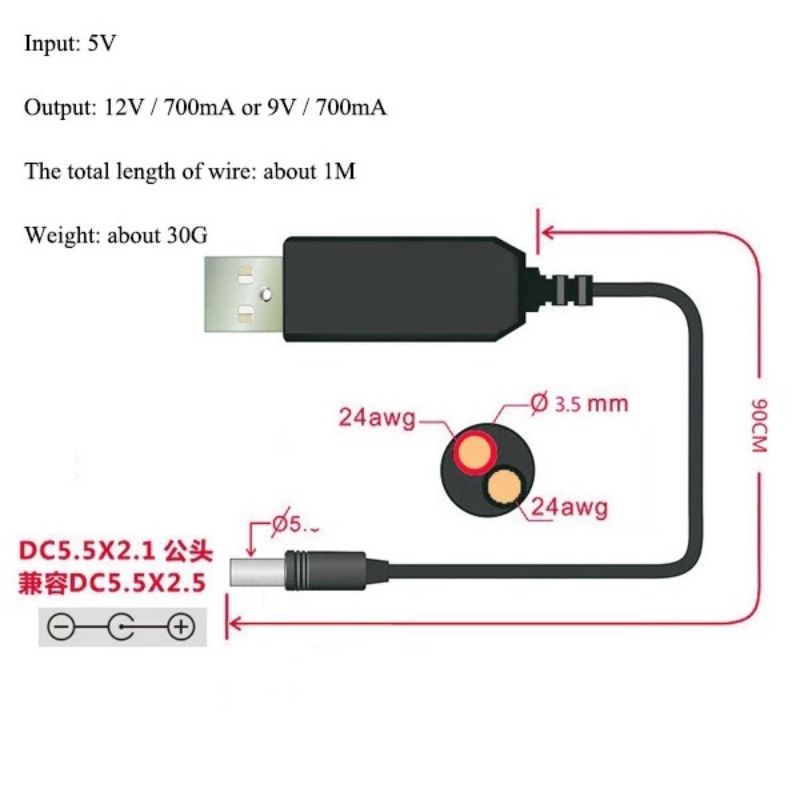 Giới thiệu Cáp chuyển đổi điện áp 5v -9v/ 5v-12v (dùng cho modem Wifi - Cúp điện vẫn có Wifi)