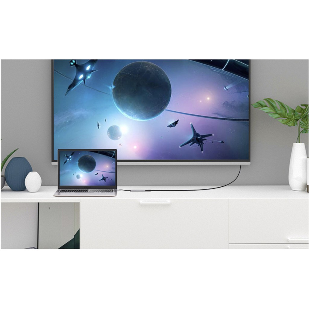USB-C sang HDMI: Kết nối laptop, điện thoại của bạn với màn hình, Tivi, máy chiếu cổng HDMI với độ phân giải hỗ trợ tối đa lên đến 4K@30Hz (3840x2160p@30Hz) và trình chiếu các định dạng video 3D..., Với tính năng này, bạn có thể trải nghiệm các Video độ phân giải cao, xem phim hay chỉ đơn giản là trình chiếu văn bản trên màn hình lớn. Hub hỗ trợ các chế độ hiển thị 2 màn hình song song, 2 màn hình hiển thị 2 chương trình khác nhau hoặc chỉ trình chiếu trên màn hình lớn (tính năng này chỉ khả dụng trên Laptop), giúp bạn cải thiện hiệu năng làm việc đa nhiệm. Đặc biệt hơn, các dòng Hub đa năng USB-C còn hỗ trợ tính năng Samsung Dex trên các dòng điện thoại và máy tính bảng của Samsung (tìm hiểu thêm về tính năng Samsung Dex là gì ở đây) , cắm và kết nối ngay tức thì mà không cần cài đặt.