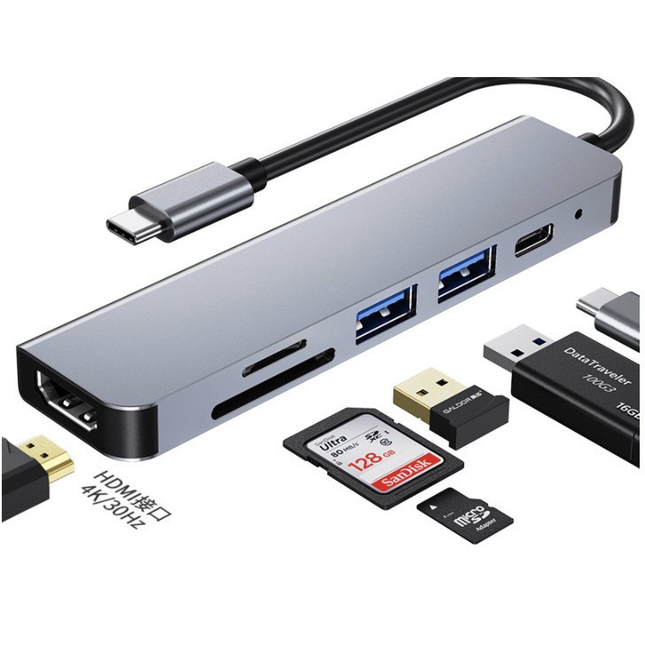 Máy tính & Laptop > Thiết Bị Lưu Trữ > USB & OTG || Cáp chuyển đổi macbook - surface - laptop typec sang hdmi + usb + thẻ nhớ sd + pd sạc 6in1Còn hàng