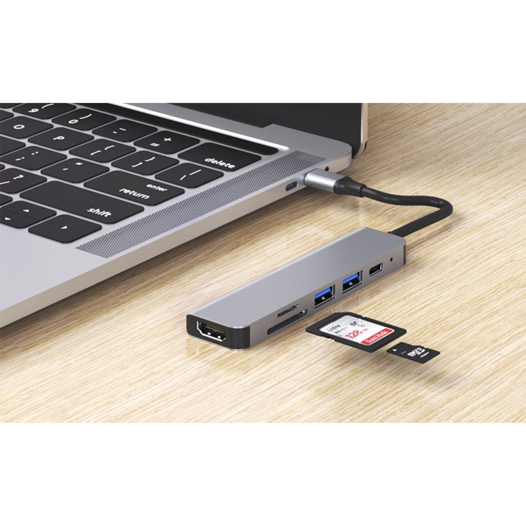 Cáp chuyển đổi macbook - surface - laptop typec sang hdmi + usb + thẻ nhớ sd + pd sạc 6in1