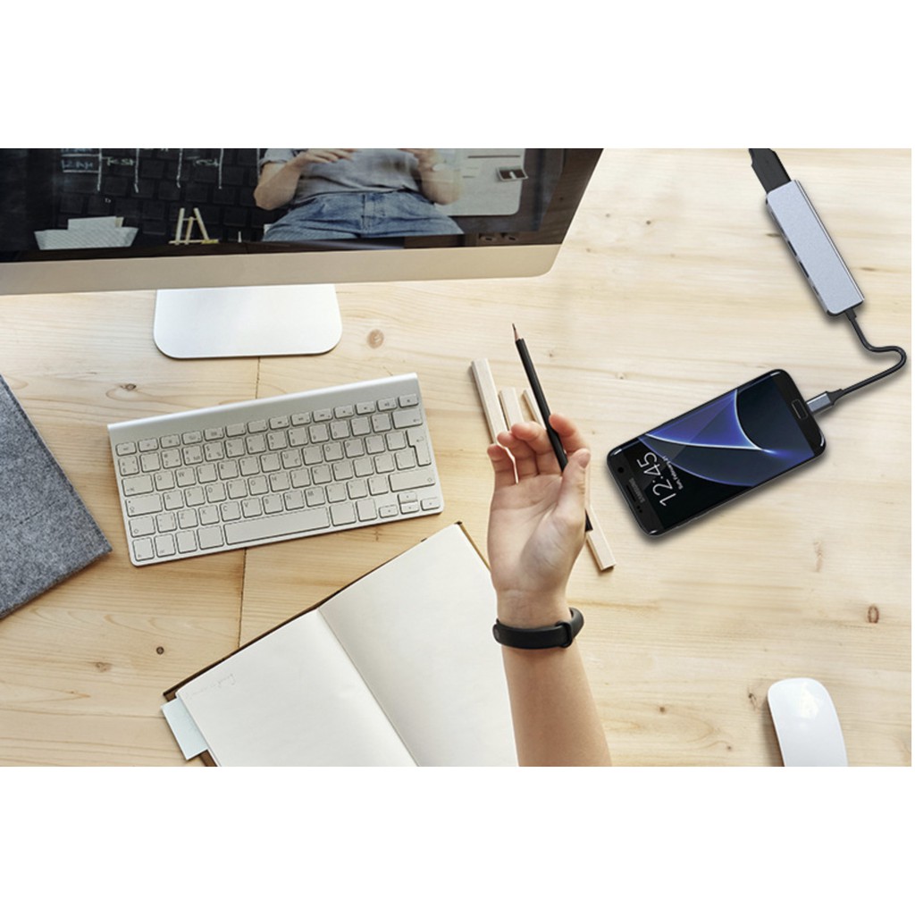 cáp chuyển đổi type-c sang hdmi + 3ussb 3.0 + thẻ nhớ SD + thẻ nhớ micro SDHub chuyển đổi đa năng USB-C 6 trong 1 là thiết bị phụ kiện hỗ trợ cao cấp tương thích với hầu hết các dòng máy mới có cổng USB-C như Macbook Pro, Dell, HP Envy, và các dòng điện thoại cổng USB-C như Samsung, HTC, Huawei, HTC, ... giúp các thiết bị này tăng cường thêm các cổng kết nối bao gồm các tính năng chính: