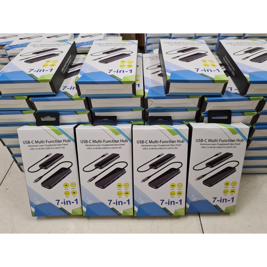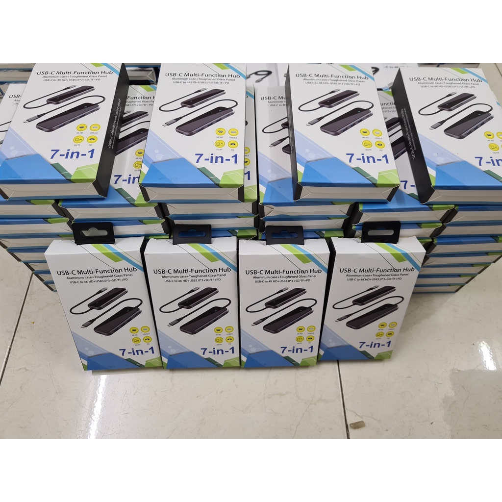 Máy tính & Laptop > Thiết Bị Lưu Trữ > USB & OTG || Cáp chuyển đổi Type C 7 in 1, HDMI 4K, 3 cổng USB 3.0, SD Card, TF Card và Type C sạc nhanh SOTAKO Chính hãng.Còn hàng
