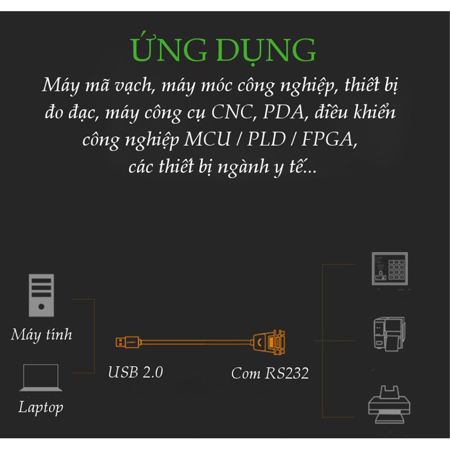◇ Cáp Chuyển Đổi Ugreen USB 2.0 Sang RS232 20201 giúp bạn kết nối từ máy tính, laptop, ipad,... sang máy in, máy scan, quáy quét thẻ,... với tốc độ cao.