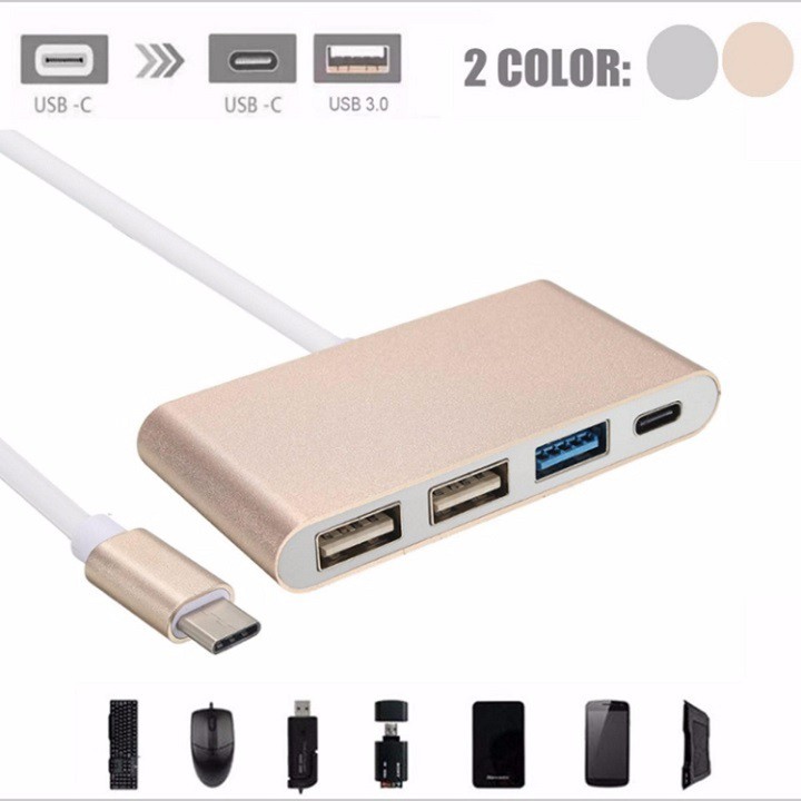 Cáp chuyển đổi USB Type-C to USB Type-C + USB 3.0 + USB 2.0- Cáp chuyển USB Type-C sang HUB USB 3.0 cung cấp tốc độ truyền dữ liệu cao lên đến 5 Gbp/s, 1 cổng USB 2.0 và cổng USB type-C cho MacBook 12, New MacBook Pro 13 15 2016 2017