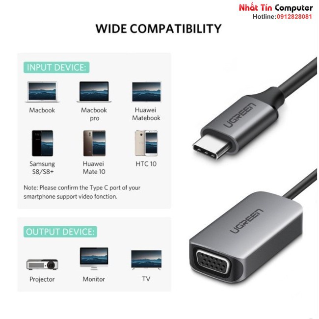 Cáp chuyển đổi USB Type-C sang VGA của Ugreen 50316 được thiết kế để kết nối các máy tính mới được phát hành như MacBook 2015, Google Chromebook Pixel hoặc ASUS Zen AiO PC với HDTV, màn hình hiển thị hoặc máy chiếu có giao diện VGA ở độ phân giải lên đến 1080P, xuất ra nội dung do người dùng tạo như thuyết trình và tài liệu công việc, nó cũng có thể hoạt động để tăng năng suất của bạn bằng cách mở rộng máy tính để bàn của bạn lên màn hình phụ, nhân đôi không gian làm việc có sẵn.