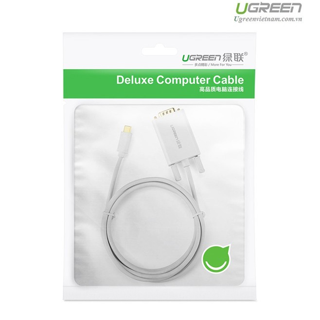 - Cáp chuyển đổi USB-C sang VGAdài 1,5m Ugreen 30842 được thiết kế để kết nối các máy tính phát hành mới như 2015 MacBook, Macbook air...có chuẩn USB Type-C với một màn hình hiển thị, hoặc máy chiếu với giao diện VGA độ phân giải lên đến 1080p.