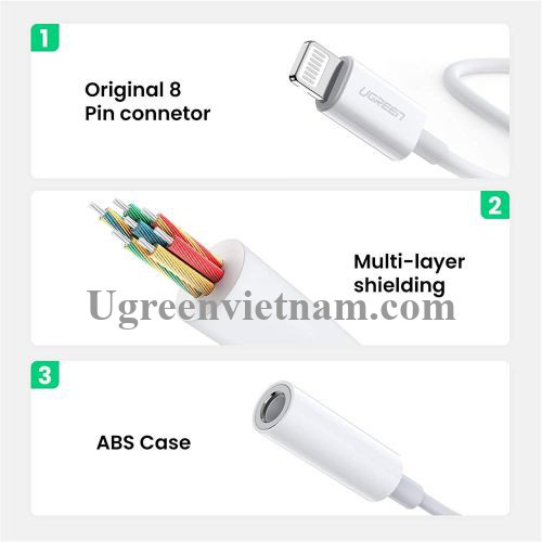 Giới thiệu Cáp chuyển lightning sang 3.5mm màu trắng US212 Ugreen 30759