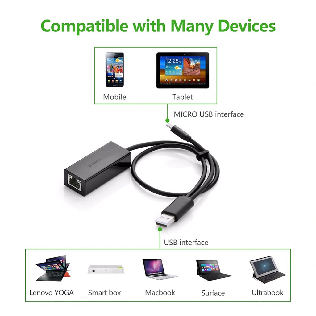 LƯU Ý Cáp Chuyển Micro USB & USB 2.0 Ra LAN UGREEN 30219 Cao Cấp