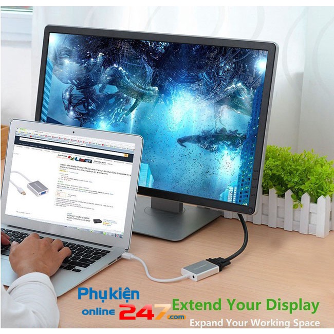 Đối với Mini DP này to VGA adapter, bạn có thể sử dụng một màn hình ngoài như không gian làm việc chính của bạn hoặc mở rộng máy tính để bàn của bạn hoặc chế độ nhân đôi.
