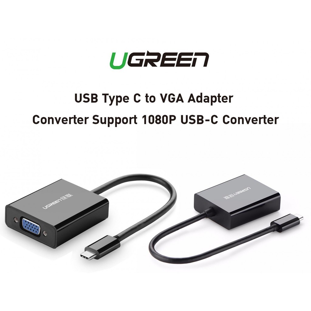 Cáp chuyển đổi USB Type-C to VGA chính hãng Ugreen UG-50250Ugreen 50250 USB-C sang VGA Adapter được thiết kế để kết nối các máy tính phát hành mới như 2015 MacBook, Google Chromebook Pixel hay ASUS Zen AiO PC với một HDTV hiện có, màn hình hiển thị, hoặc máy chiếu với giao diện VGA độ phân giải lên đến 1080p.