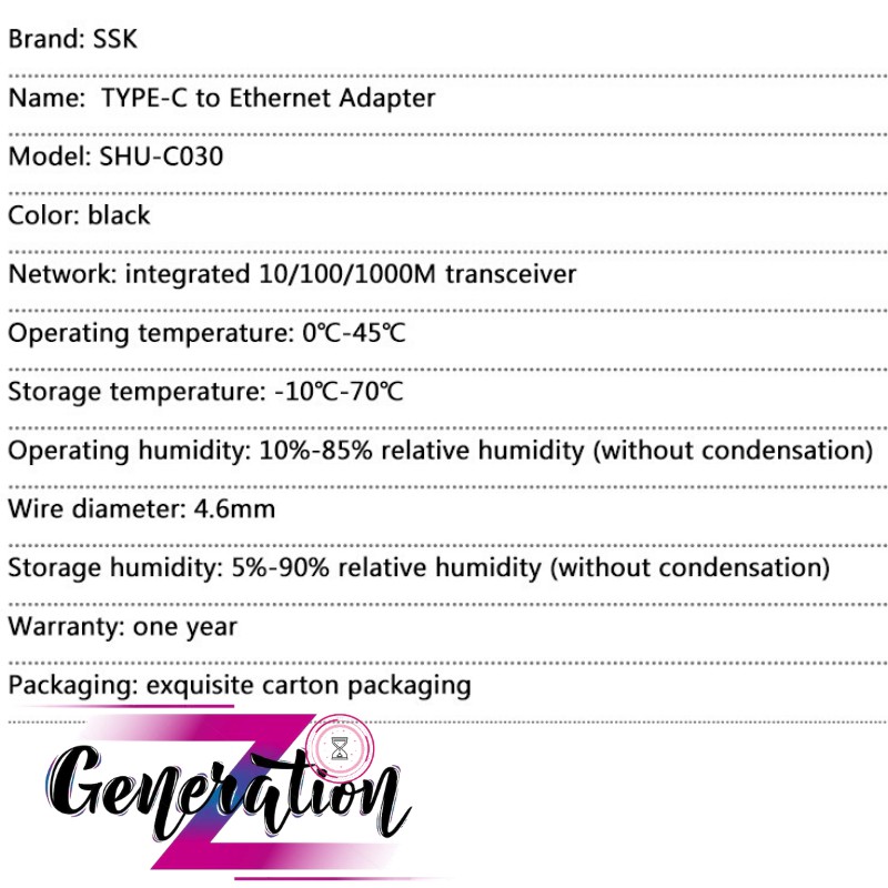 THÔNG TIN SẢN PHẨMCÁP TYPE-C -> LAN SSK (SHU-C030)